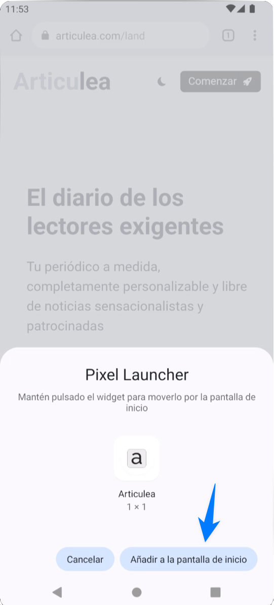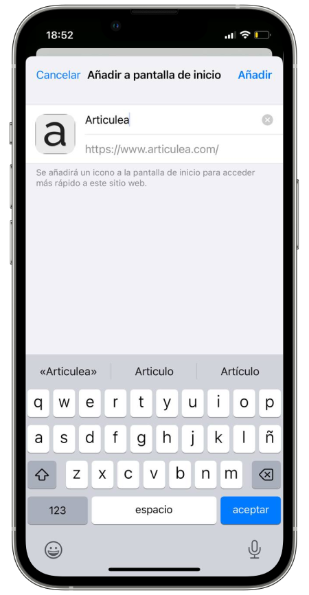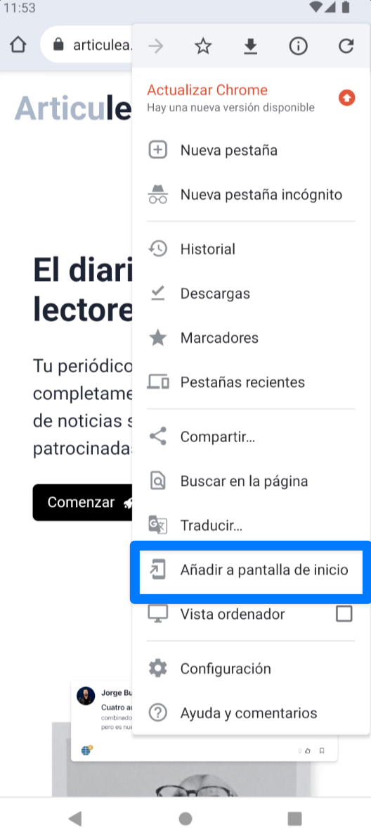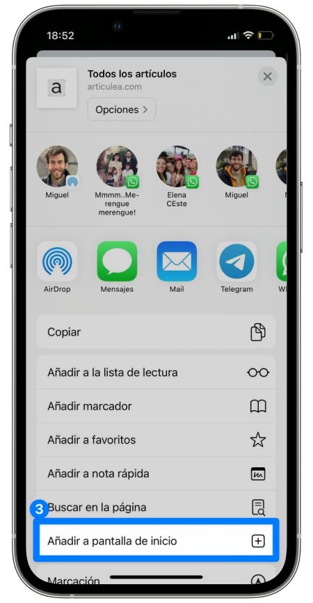 - En el menú hay que seleccionar la opción 'Añadir a la pantalla de inicio'.
